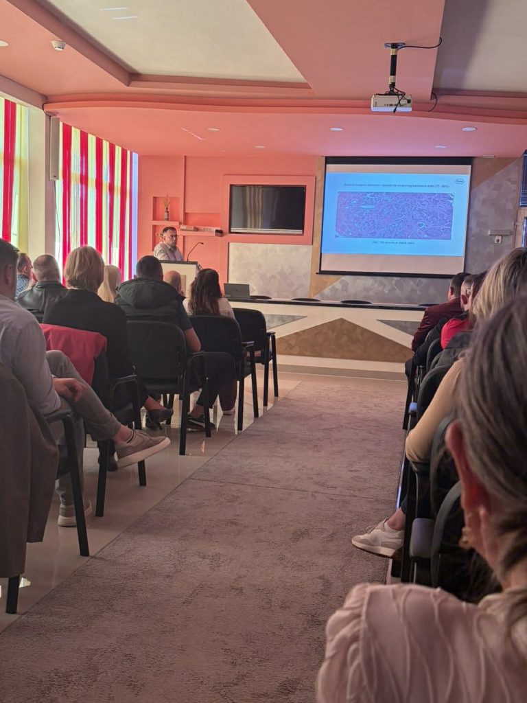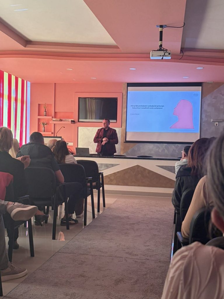 Prisutne je upoznao sa potrebom multidisciplinarnog pristupa, praćenju i primjeni savremenih algoritama u liječenju pacijenata oboljelih od karcinoma dojke, kao i standardiziranju puta pacijenta kao sigurnosti da će pacijent biti zbrinut na najbolji način. Sljedeći predavači redom su se smjenjivali uz odlične prezentacije na zadate aktuelne teme: prim.dr. Emir Abdulović, dr Merisa Agović, dr Amir Spahić, dr Adnan Šatrović, dr Rejhan Demić, dr Mirela Kalamujić, doc.dr. Berisa Hasanbegović, dr Mersiha Alijagić uz završnu riječ moderatora prof.dr. Semira Bešlije koji je sumirao prezentacije sa skupa uz praktične smjernice za dalji rad kolega sa područja SBK, a osvrnuo se i na odličnu saradnju sa onkološkim odjelom JU Bolnica za plućne bolesti i TBC Travnik te tom prilikom konstatovao da onkološki odjel daje usluge najvišeg nivoa poštujući sve aktuelne smjernice koje se provode u referalnim svjetskim centrima.